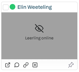 - Wanneer de leerling online is maar in de pop-up nog geen toestemming heeft gegeven, zie je een groen bolletje maar blijft het beeld grijs.